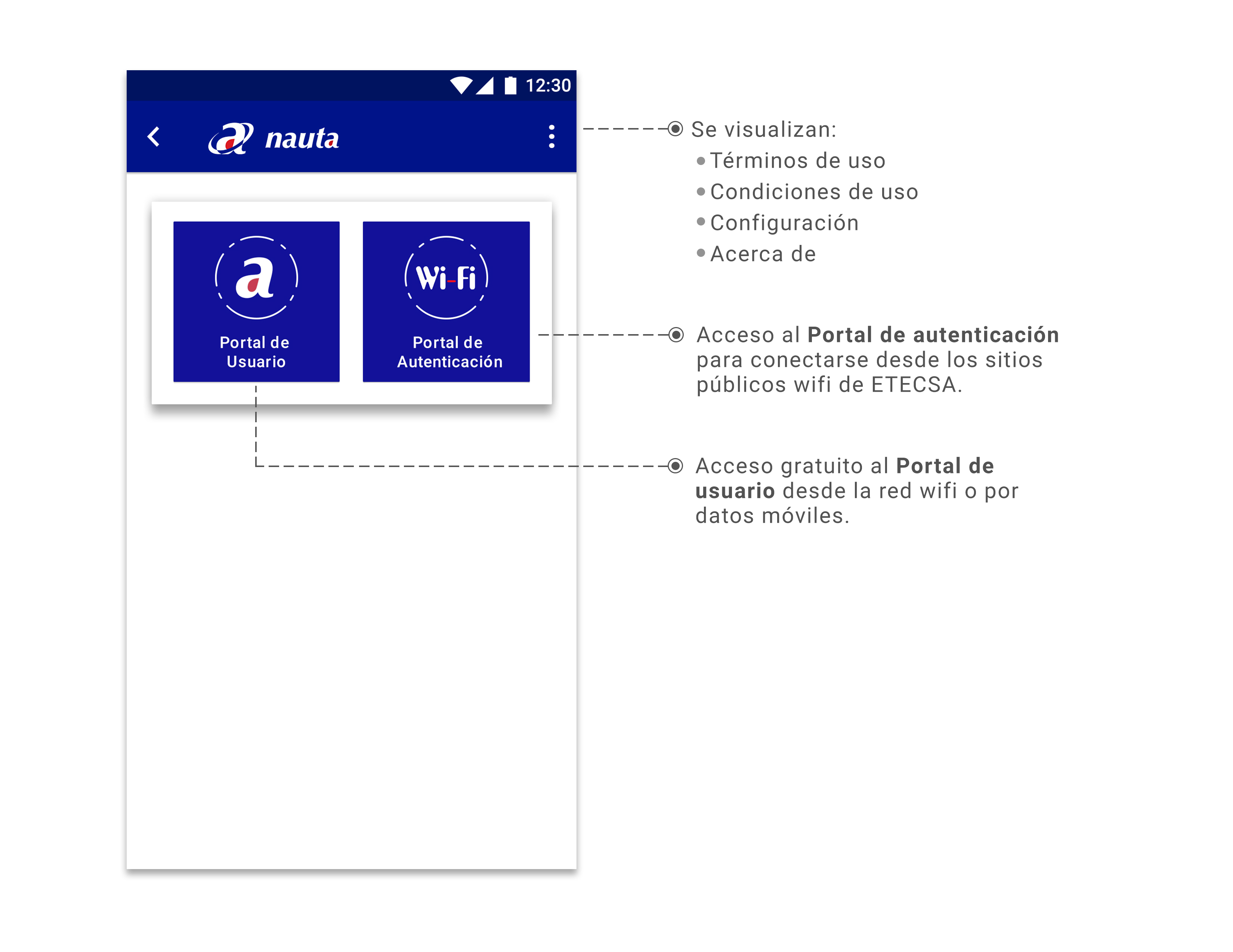 - Acceder de manera gratuita al Portal de usuario, sin necesidad de teclear la dirección url en el navegador, activando los datos móviles o por la red WIFI_ETECSA.