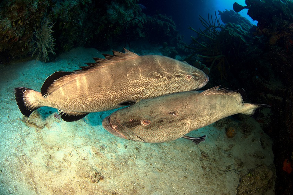 Noel nos comenta: “En más de una ocasión, hemos tenido la suerte de ser testigos de un comportamiento animal muy difícil de observar en la naturaleza. En este caso me estoy refiriendo a los peces, y siendo más específicos a una especie conocida en Cuba como Aguají (Mycteroperca Bonaci), que puede llegar a tener más de 90 cm de tamaño y 100 libras de peso. Este pez generalmente es muy perseguido por los pescadores submarinos, por su gran tamaño y la calidad de su carne, aunque en ocasiones puede estar contaminado con la toxina que produce la ciguatera.