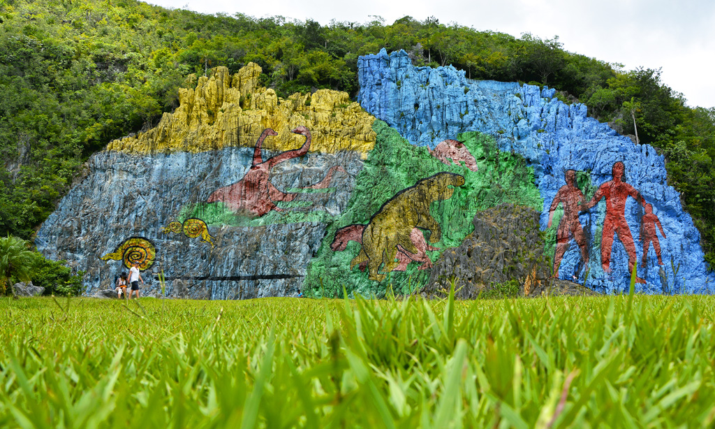 El Mural de la Prehistoria, en el Valle de Viñales (Pinar del Río) representa el pasado biogeológico de la región (Fuente: Abel Rojas/Cubahora)