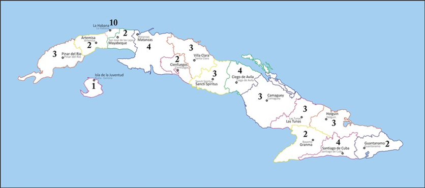 Representantes de la ACDAM en las provincias del país (Mapa: Cortesía de la entidad)
