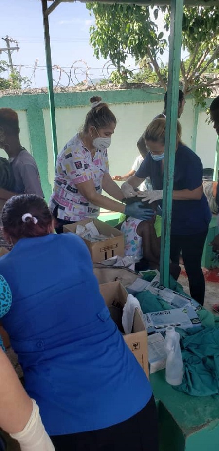 Señaló que las instituciones hospitalarias resultaron dañadas, por lo cual los médicos y enfermeros cubanos, junto con el personal local, ofrecen los tratamientos de urgencia en las afueras de las instalaciones.