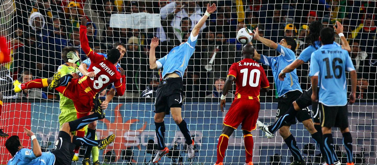 Luego de que Luis Suárez detuviera con la mano un disparo a portería, el equipo de Ghana desaprovechó la oportunidad de anotar de penal, perdiendo así la posibilidad de avanzar a la fase semifinal de la copa del Mundo de Sudáfrica 2010 (Foto: Getty Images).