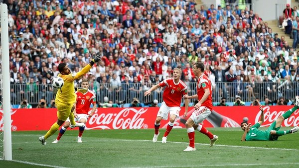 Artem Dzyuba, quien también mostró sus buenas dotes en la conducción del balón, anotó a los 71’ y puso el 3-0. El juego se trabó un poco en el mediocampo; mucha pierna dura y ciertas transiciones inefectivas, por lo que todo indicaba que cerraría así. Sin embargo, en tiempo agregado, llegaron otras dos anotaciones: una diana de Cheryshev –su segunda del partido-, al minuto 91, y otra del mejor jugador del cotejo, el volante creativo Aleksandr Golovin, en el 94’, “aderezaron” el monólogo ruso.