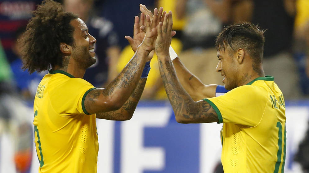 Neymar (derecha) y Marcelo, dos jugadores brasileños de vasta experiencia (Foto: Getty Images)