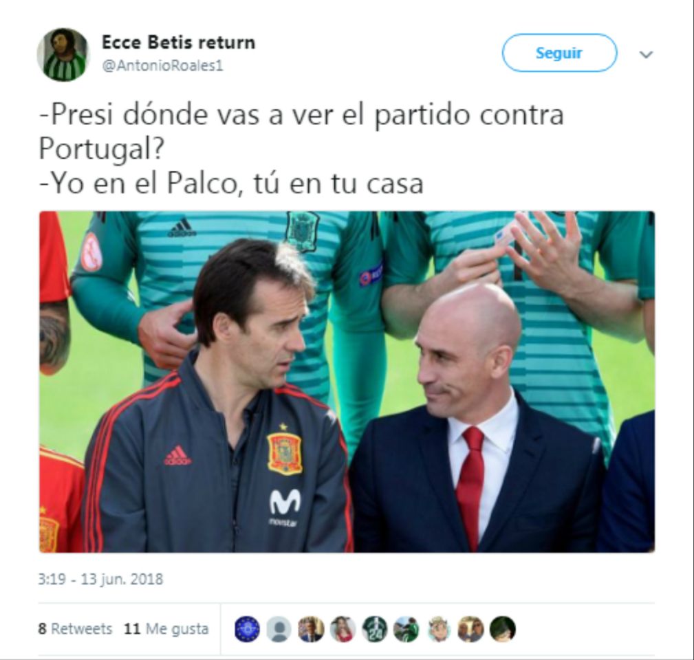 Memes como este han desbordado las redes sociales desde que se conociera la destitución de Julen Lopetegui por el presidente de la federación española de Fútbol, Luis Rubiares (Foto: Deportes.yahoo.com).