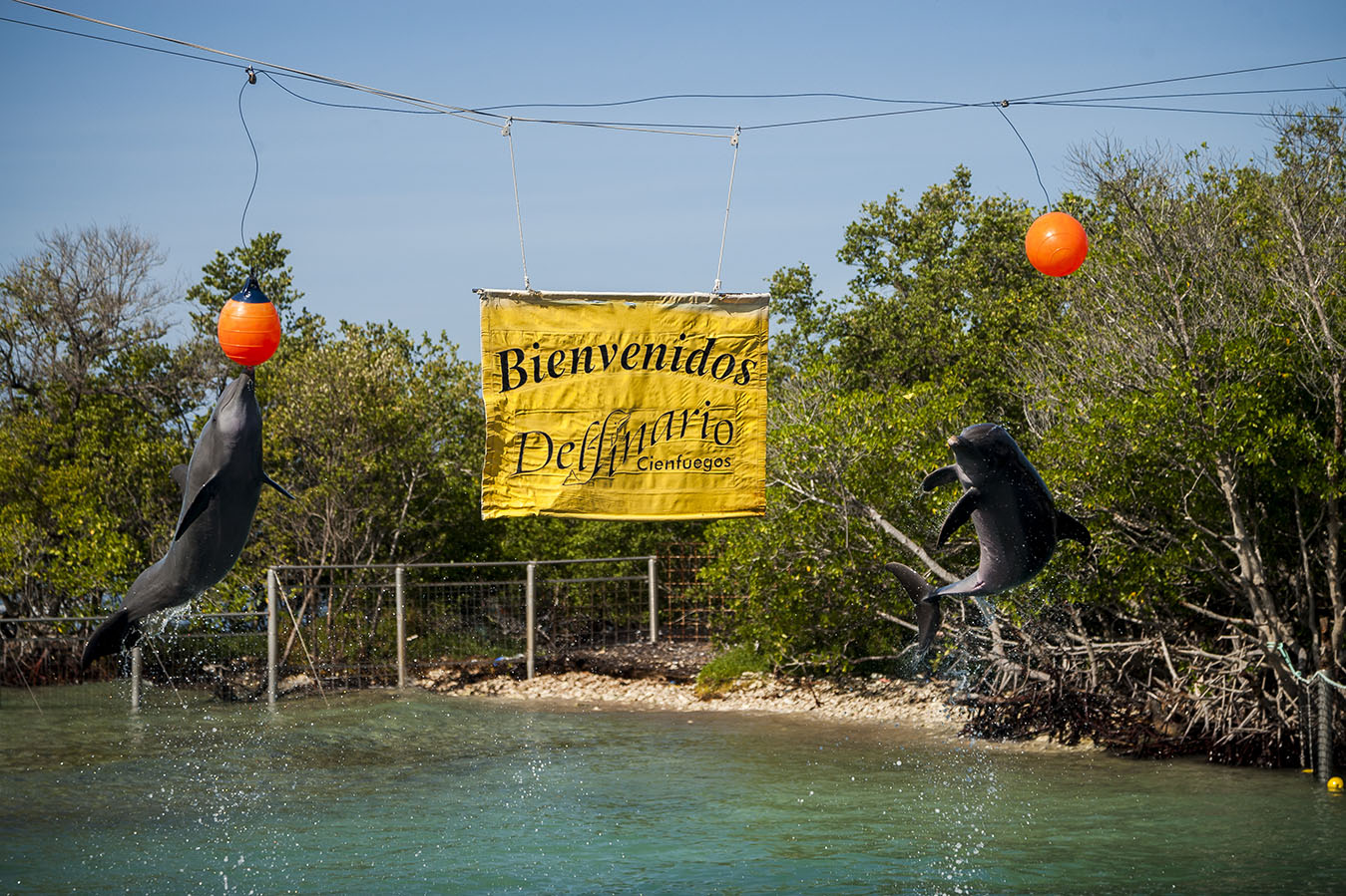 Perla y Oceanic son las estrellas del delfinario de Cienfuegos: dos ejemplares únicos que cautivan en cada espectáculo a sus visitantes. Risas, acción, mensajes para proteger al medio ambiente y mucha interacción con el público son algunas características del show.