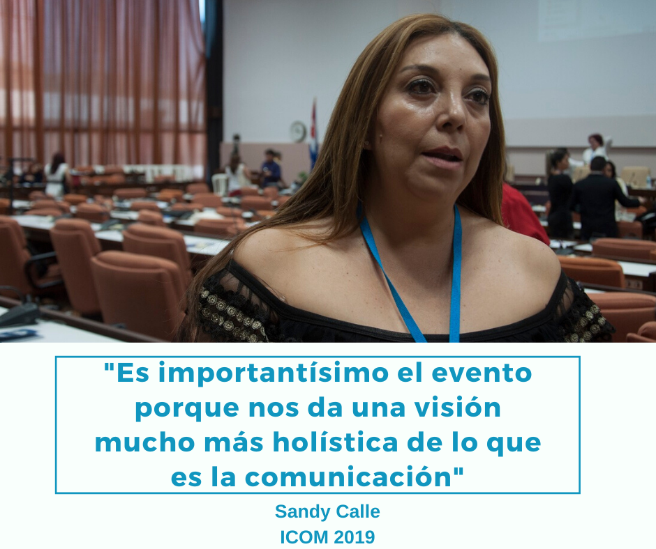 ICOM es una posibilidad para encontrar personas del mundo con preocupaciones similares a las tuyas y es un momento de intercambio sobre temáticas académicas y vinculadas a la ciudadanía. Esta es mi primera vez en Cuba y en este país hay un potencial muy grande a través de las experiencias que existen de inteligencia colectiva, de pensar alternativas de un modelo económico, político, desde Cuba con la gente que vive en Cuba.