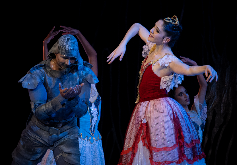 Don Quijote inmerso en un estado de alucinación en el que cree ver a Dulcinea encarnada en Kitri. (Lissey del Monte Valdés/Cubahora)