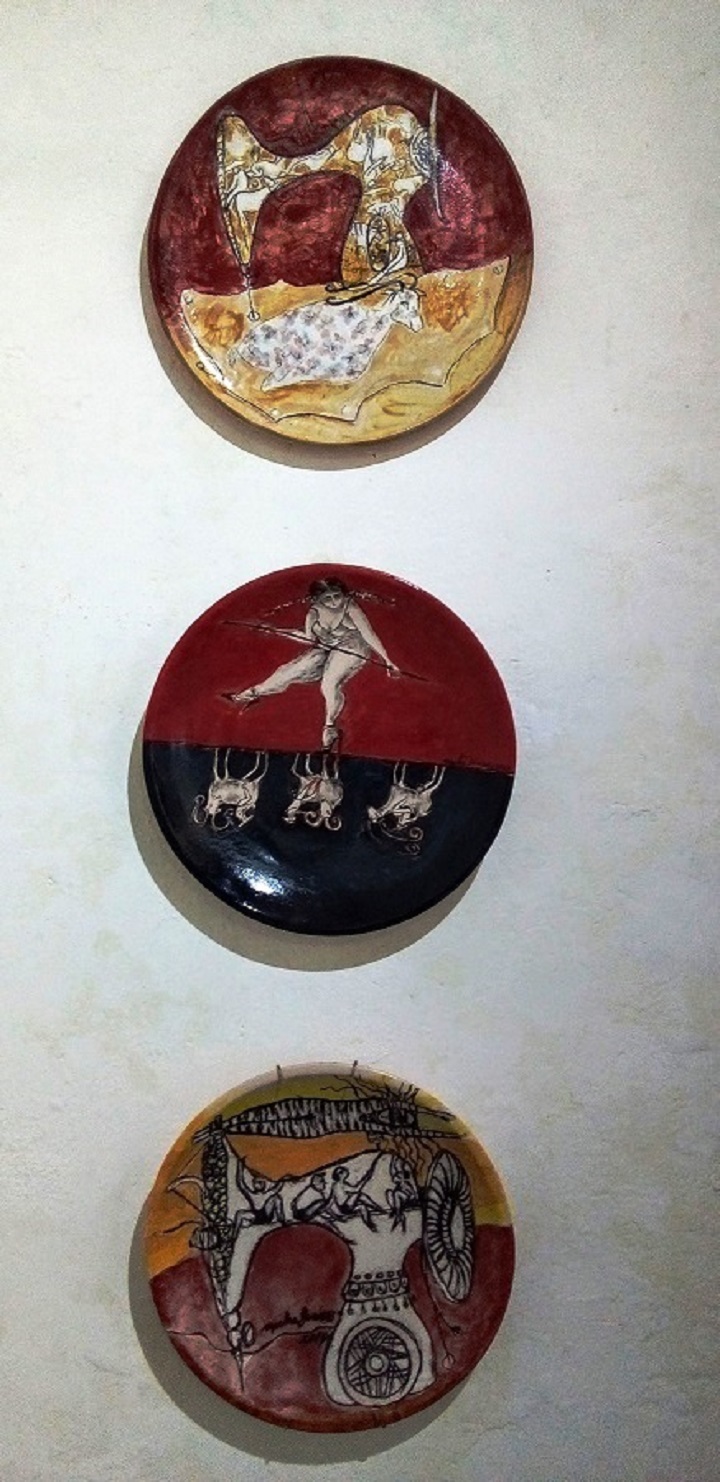 Estos platos cerámicos esmaltados fueron los que dieron origen al nombre de la muestra Degustación. (Maya Quiroga/Cubahora)