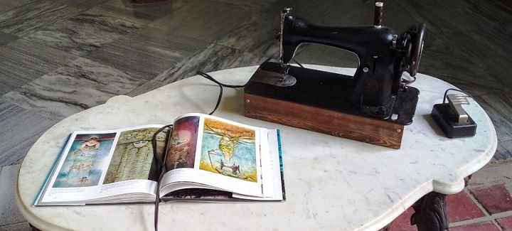 Me gusta coser a máquina, confesó la artista. Esta instalación se integra al discurso feminista de la exposición. (Maya Quiroga/Cubahora)