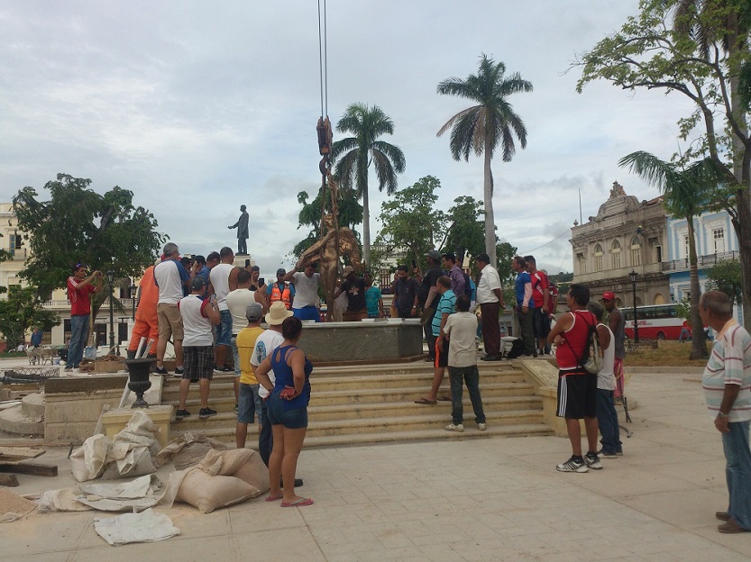 El pueblo matancero asiste a la reubicación de la pieza escultórica (Foto: Jessica Mesa/ Cubahora).