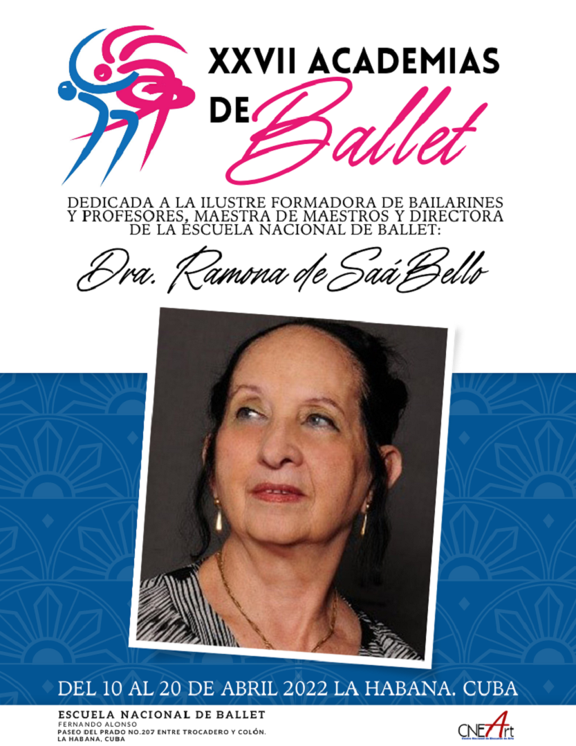 Del 10 al 20 de abril se desarrollará el XXVII Encuentro Internacional de Academias para la Enseñanza del Ballet, dedicado a la Doctora Ramona de Saá Bello, directora de la Escuela Nacional de Ballet Fernando Alonso (ENBFA), ilustre formadora de varias generaciones de bailarines y presidenta de honor de la cita.
