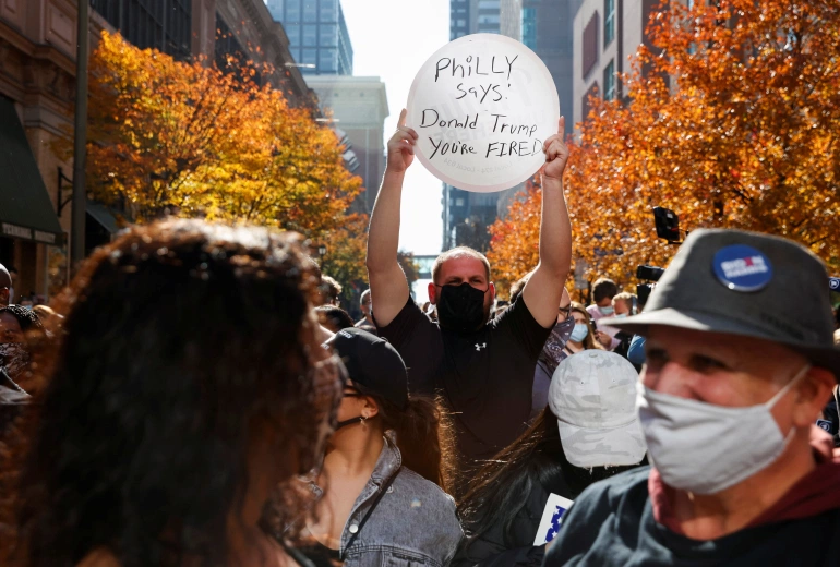 Personas a favor de Joe Biden celebran su vistoria en Filadelfia, Pensilvania (Foto: Rachel Wisniewski / Reuters)