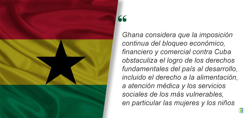 “El bloqueo socava igualmente los esfuerzos cubanos y colectivos encaminados a implementar la Agenda 2030 para el Desarrollo Sostenible”, expresó el gobierno de Ghana.