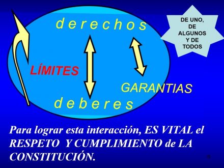Y me disculpan, siempre voy a decir primero los derechos, porque nos asociamos para disfrutar los derechos, y consiguientemente cumplimos con los deberes. Por ejemplo, las personas no se casan para formalizar el matrimonio y disfrutar el amor, y por consiguiente respetar a su compañera o compañera. No se formaliza el matrimonio para respetar al otro y que queden los derechos a disfrute para después. Tiene que haber un equilibrio permanente, constante, entre derechos y deberes, tanto en la familia como en la sociedad, porque si no la balanza se desequilibra y, por lo tanto, se lesionan los derechos y se incumplen los deberes.