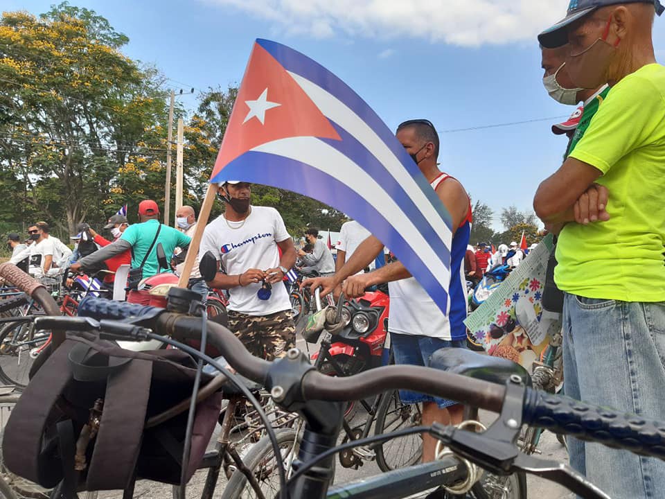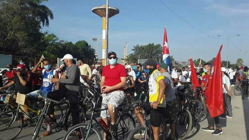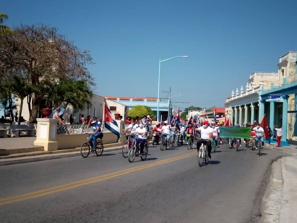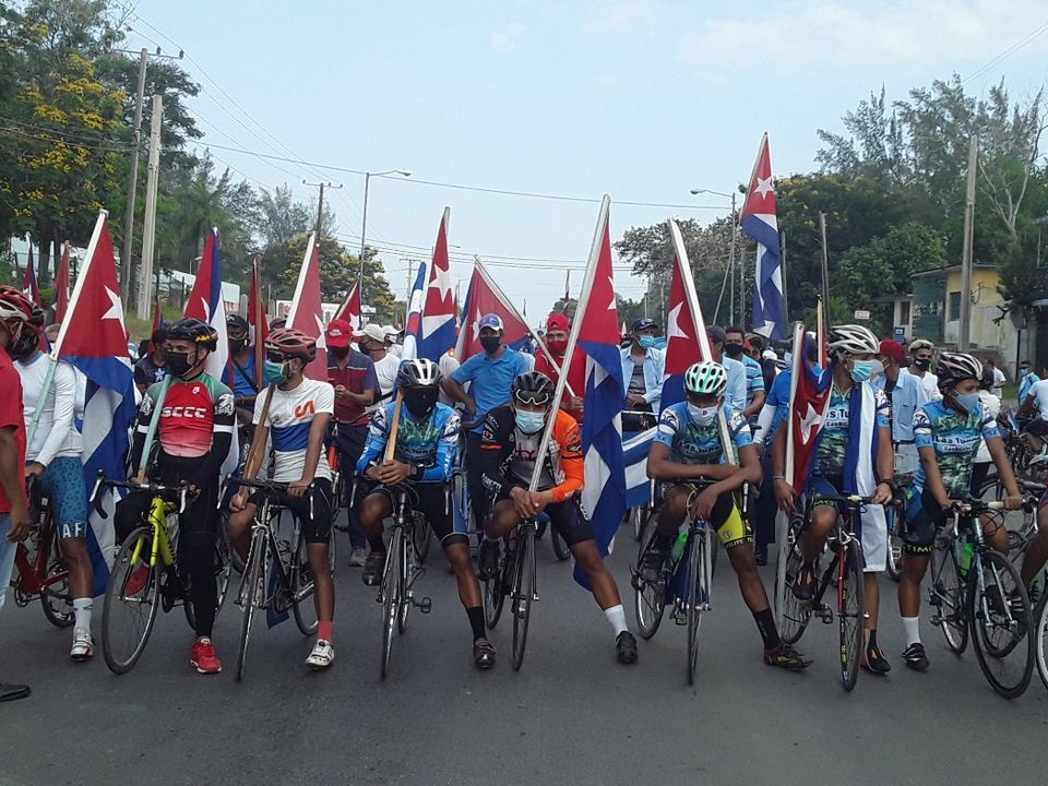 En manos solidarias, en las del pueblo trabajador, en las de figuras reconocidas, ondeó este domingo 25 de abril, la bandera de la estrella solitaria. Bordeó ciudades, navegó, desandó una vez más las avenidas de provincias como Villa Clara y Las Tunas. En bicicletas, patines, carros, cocotaxis, bicitaxis, motos, la cargaron cubanos y ciudadanos de varios países, que en otra jornada de domingo volvieron a exigir el cese del bloqueo contra Cuba.