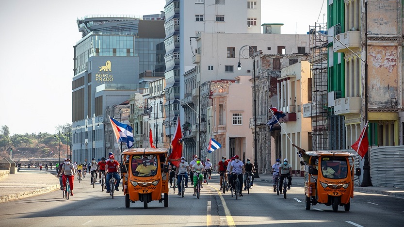Bicicletas modernas y viejas, automóviles estatales, particulares y hasta los que lucían matrículas de empresas extranjeras frenaron en las cercanías del muelle flotante, recogieron banderas y continuaron su andar.