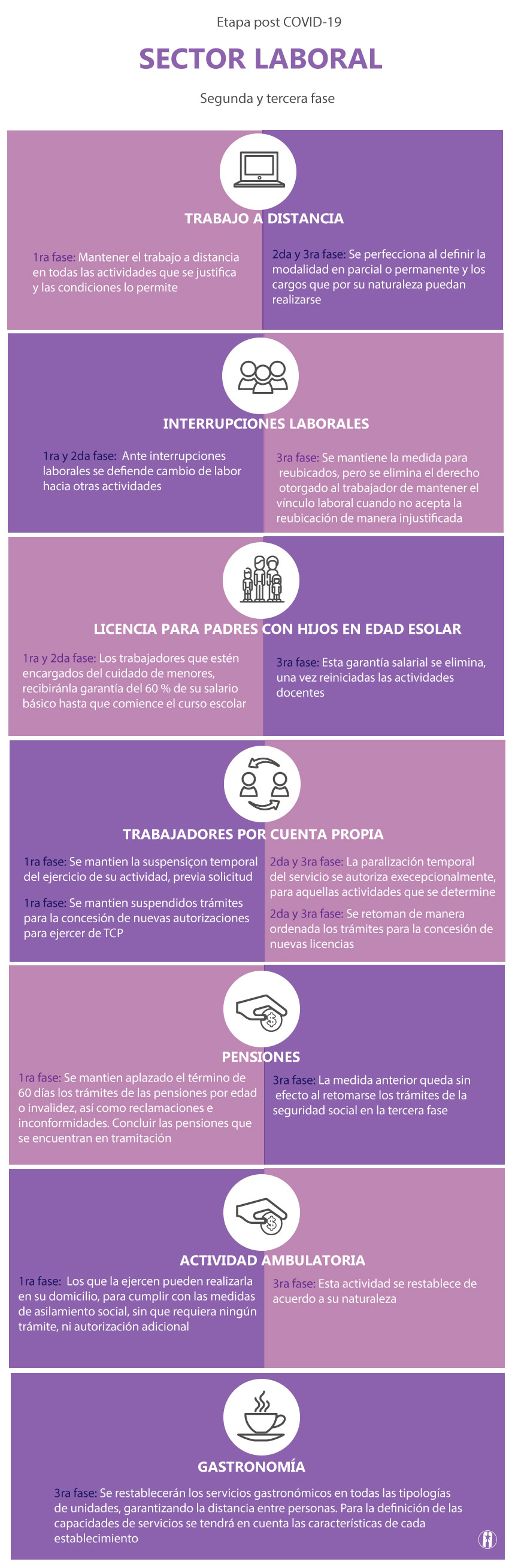 En los incios del programa, Marta Elena Feitó, ministra de Trabajo y Seguridad Social explicó que se trata de un grupo de medidas agrupadas en tres fases Post COVID-19. A estas se llegan bajo el cumplimiento de determinados indicadores. Las medidas, por su transversalidad son de gran importancia para empresas y trabajadores.