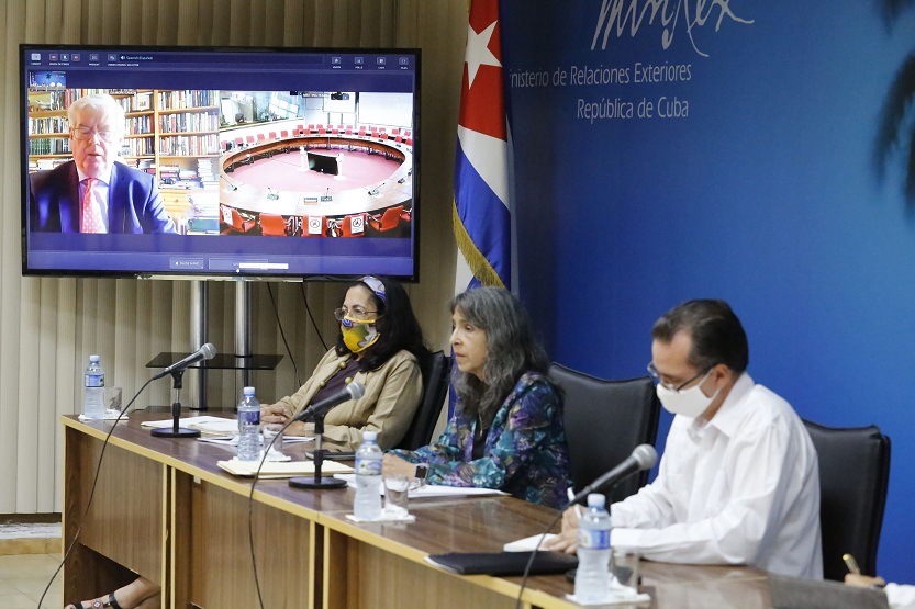 Este viernes 26 de febrero de 2021, sesionó de manera virtual, la Tercera Ronda del Diálogo sobre Derechos Humanos entre Cuba y la Unión Europea, en el marco del Acuerdo de Diálogo Político y Cooperación entre el país caribeño y el bloque europeo. Las respectivas delegaciones estuvieron presididas por el Sr. Eamon Gilmore, representante especial de la Unión Europea para los Derechos Humanos, y María del Carmen Herrera Caseiro, directora general interina de Asuntos Multilaterales y Derecho Internacional del Ministerio de Relaciones Exteriores de Cuba.