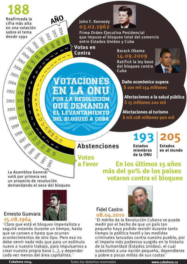 Josefina Vidal: No sé cómo votaría Estados Unidos, es algo que ellos tendrán que decidir, discutir y dirimir. Del lado de Cu­ba, por supuesto, mientras el bloqueo se mantenga, y el bloqueo se mantiene, el propio presidente Obama lo reconoce, y el propio presidente Obama ha estado diciendo ya que va a involucrarse personalmente en un debate con el Congreso dirigido a lograr el fin del bloqueo; en fecha reciente, la misma se­mana pasada él instó, hizo un llamado al Congreso de Estados Unidos en su Discurso sobre el Estado de la Unión a levantar el bloqueo, por tanto, el bloqueo está, está presente, se mantiene, el propio gobierno de Estados Unidos lo reconoce así, y mientras esa situación se mantenga, por supuesto que Cuba va a insistir en su reclamo de que se levante el bloqueo, porque es una política obsoleta, es una política que ha dañado los intereses de Estados Unidos, pero daña al pueblo de Cuba, el propio Presidente de Estados Unidos lo reconoció el pasado 17 de di­ciembre. Por tanto es una batalla y es algo que continuaremos haciendo hasta que esa política no sea definitivamente elimi­nada.