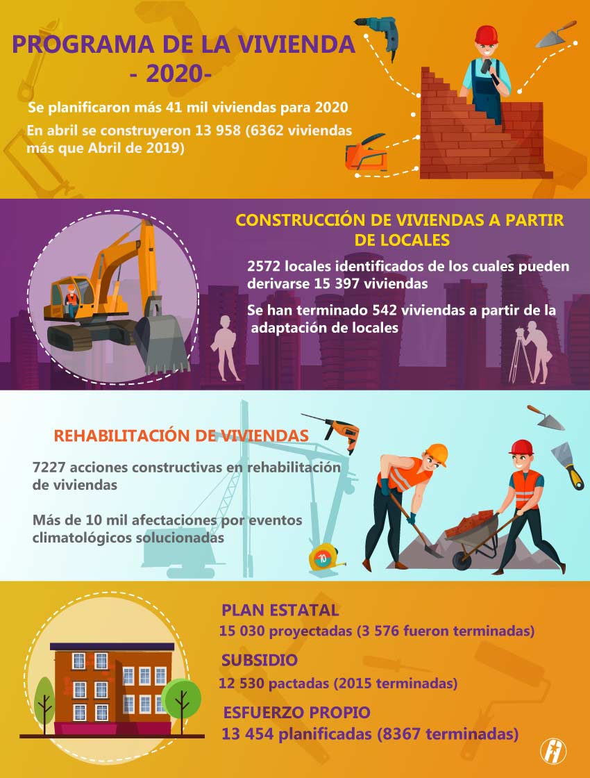 El sector de la construcción es uno de los que no ha cesado durante el nuevo coronavirus. Tampoco su contribución en los programas priorizados del país. El plan de enfrentamiento a la pandemia en este ministerio se ha concentrado en la reparación de inmuebles hospitalarios, la industria alimentaria, la construcción de viviendas y el desarrollo hidráulico. Además, se trabaja en las inversiones de alta prioridad como las fuentes renovables de energía.