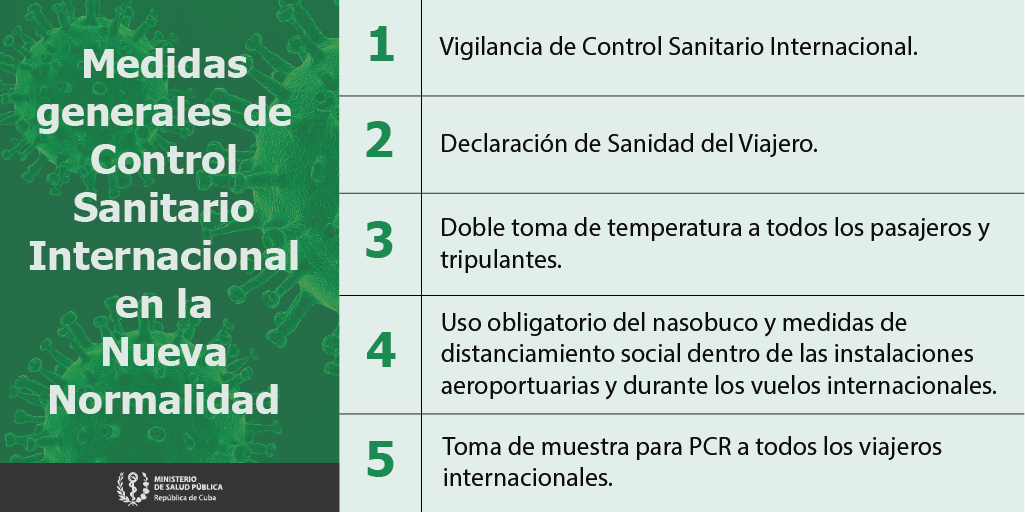 Es por eso que, teniendo en cuenta las inquietudes de la población sobre las medidas de Control Sanitario Internacional tomadas en los aeropuertos, el jefe del Departamento de Control Sanitario Internacional del MINSAP, brindó respuestas a algunas de las interrogantes más frecuentes. Dicho apartado del sitio del MINSAP se mantendrá actualizado con las preguntas y aclaraciones por parte de las autoridades pertinentes.
