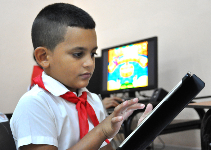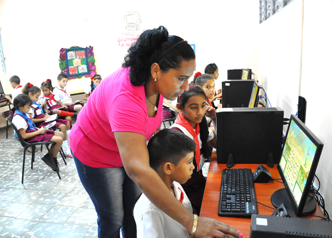 Los niños que cursan sus estudios en esta escuela rural, situada a más de ocho kilómetros de la cabecera del municipio de Buey Arriba, cuentan con una miniludoteca tecnológica, en la cual disponen de tablets, computadoras y software educativos, tales como el Pa´que te Eduques.