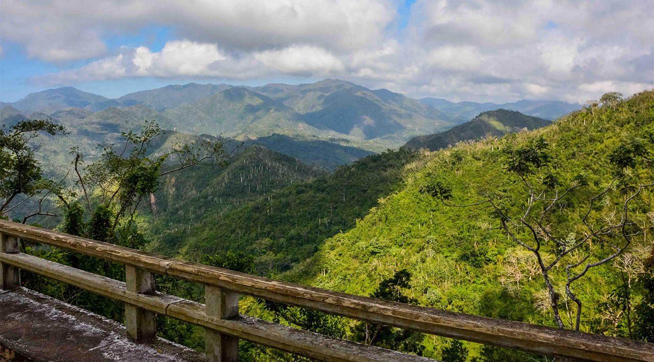 El Viaducto de La Farola está rodeado por vistas espectaculares: los paisajes montañosos de los campos de Baracoa, en la oriental provincia Guantánamo, combinan belleza y majestuosidad.