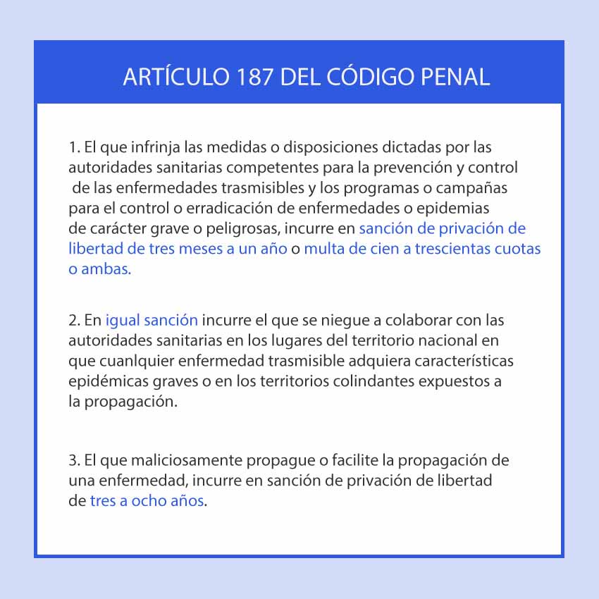 Dichas acciones están amparadas en la Constitución de la República, donde se establece el bien colectivo por encima del bien individual. (Ver Artículo 45) Además, nuestro Código Penal también tiene recogido, en su artículo 187 las sanciones para aquellas personas que infrinjan las medidas o disposiciones dictadas por las autoridades sanitarias competentes.